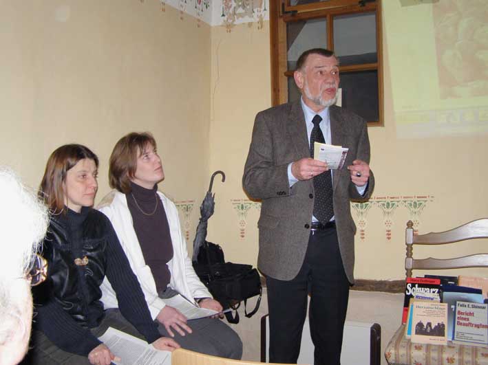 In seiner Begrüßung freute sich Hausherr und Bürgermeister Ernst-Uwe Offhaus über den guten Besuch der Veranstaltung vom Verein Historisches Feldatal und dem Förderverein Jüdische Geschichte. Daniela Eichelberger gab einen kurzen Überblick über das Projekt Judenpfad, für das Jacob und sie arbeiten.