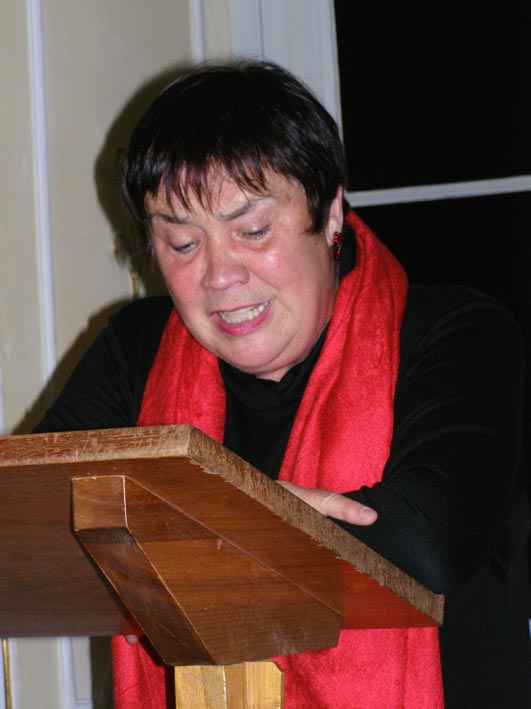 Der Rosa-Luxemburg-Club Vogelsberg und der Lauterbacher Kulturverein hatten die Schauspielerin nach Lauterbach ans Pult geholt. Dietmar Schnell, Sprecher des Clubs, begrüßte den Gast und die Zuhörer.